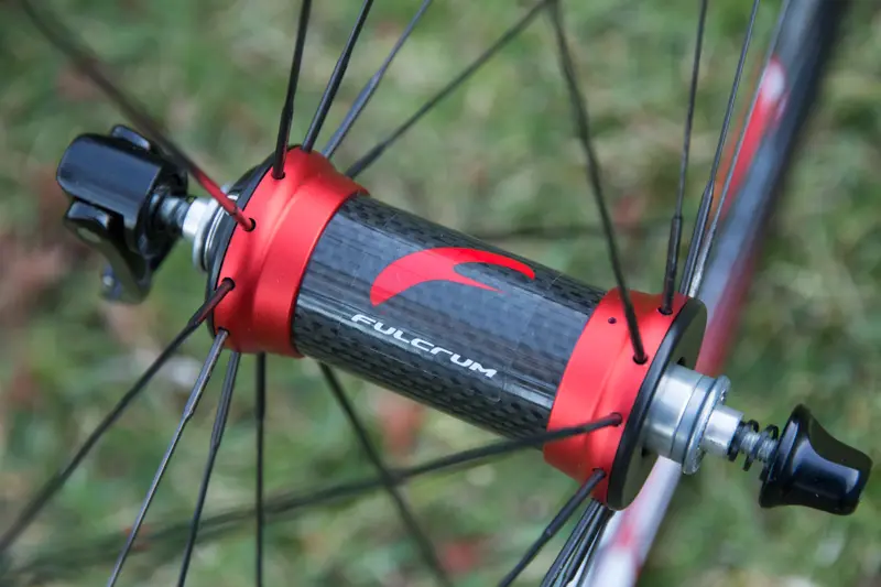 Les forces ne s’appliquent plus sur la jante, mais sur le moyeu. Fulcrum a été l’un des premiers à embrasser totalement ce changement avec son standard AFS (Axial Fixing System), compatible avec le Centerlock, et en généralisant les axes traversants bien avant que cela ne devienne la norme absolue.