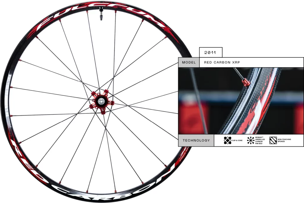 • Red Carbon XRP (2011) : La reine du Cross-Country. Avec seulement 1347g, cette roue carbone a accompagné des légendes comme Gunn-Rita Dahle Flesjå, José Hermida et l’équipe Merida Multivan. Le corps de roue libre en titane et les rayons « straight pull » montraient une recherche obsessionnelle de l’allègement.