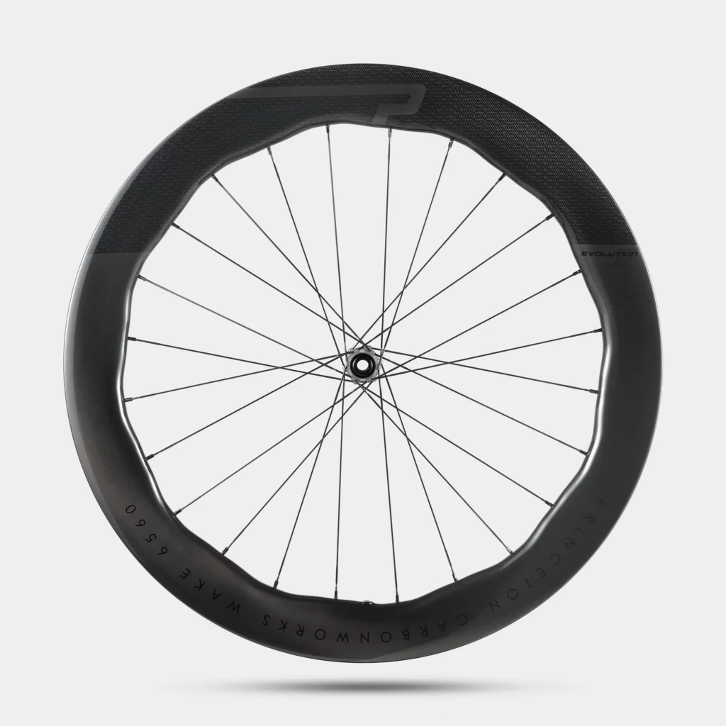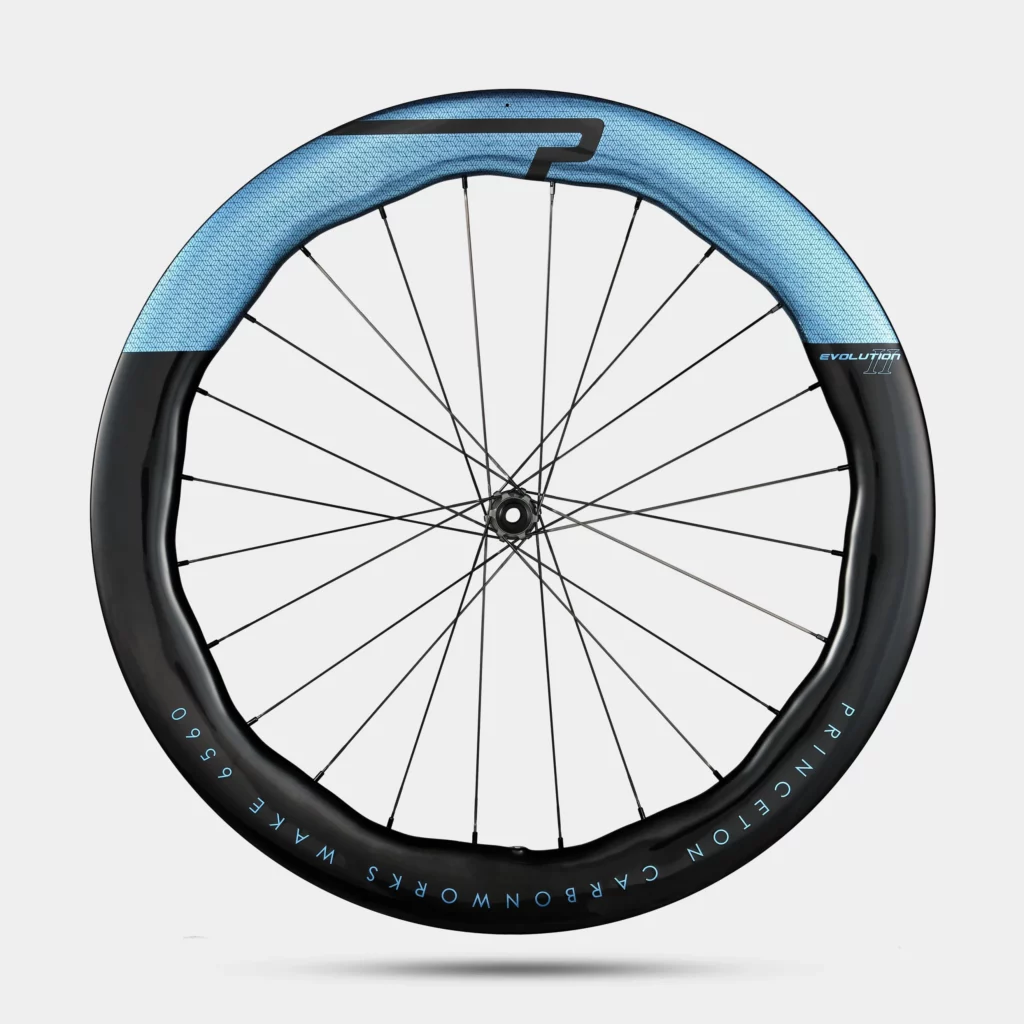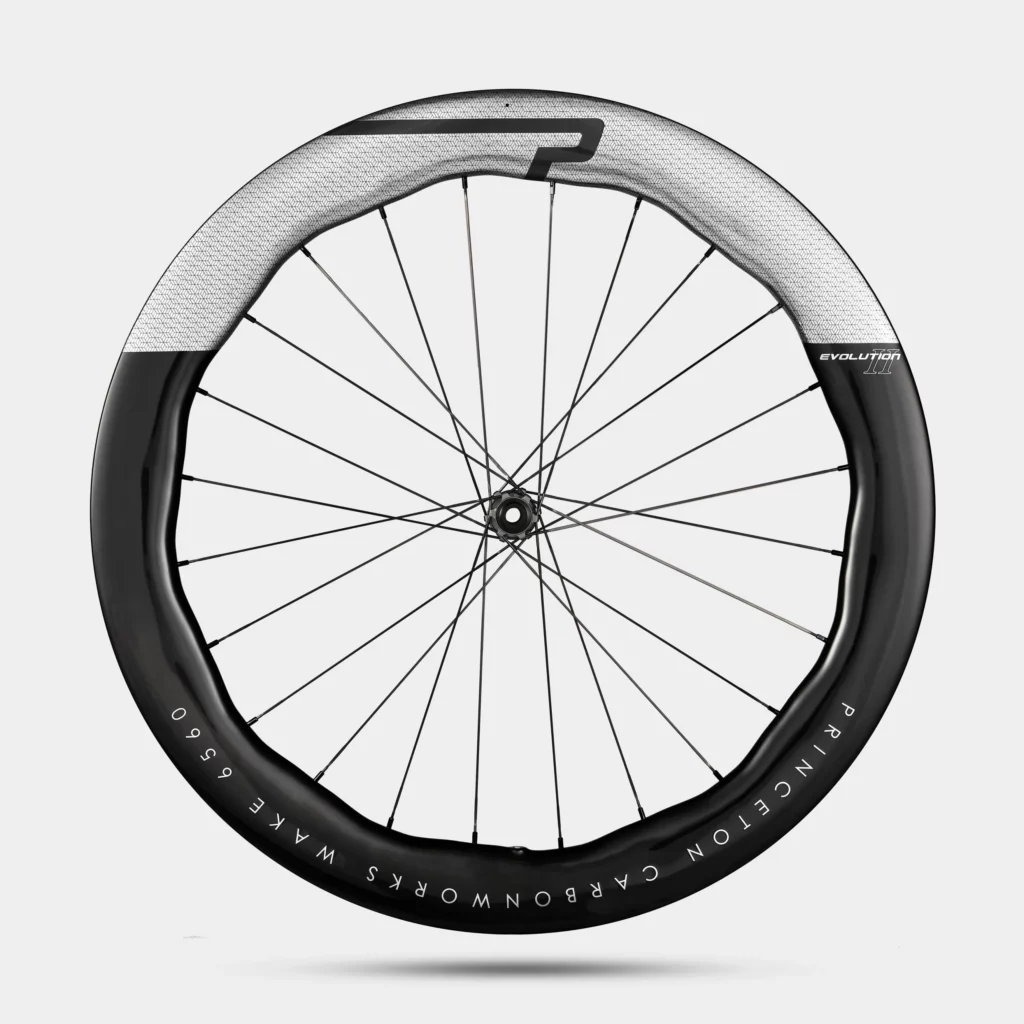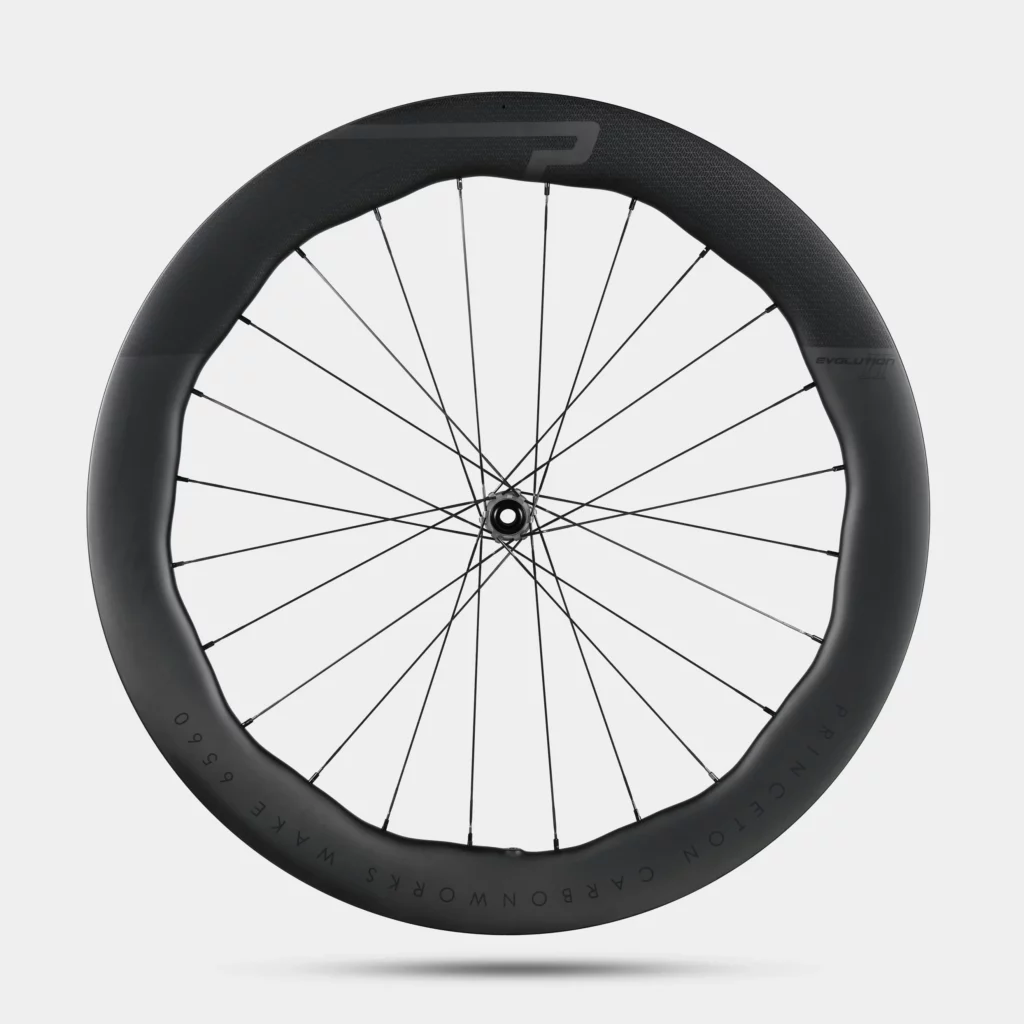 Princeton CarbonWorks vient d’annoncer en février 2026 la Princeton Wake 6560 Evolution II, sixième génération de sa roue phare, et la marque sort l’artillerie lourde : c’est selon elle la roue UCI homologuée la plus rapide jamais testée dans leur soufflerie. Nouvelle jante plus légère (420g contre 470g sur l’Evolution I), process de développement repensé à partir du pneu, crochet renforcé quand tout le monde passe au hookless. Princeton fait une fois de plus le contraire de la foule, et pas sans arguments.