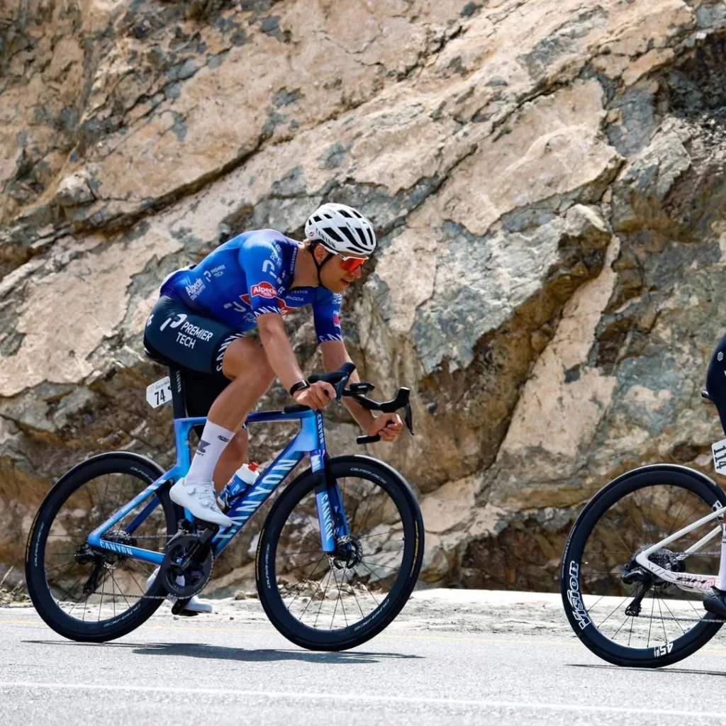 Team Jayco AlUla reste sur Giant et roule sur des Cadex, la ligne premium de Giant. L’équipe australienne conserve une continuité totale de ses partenaires pour 2026 : Giant/Cadex sur toute la ligne, avec Shimano Dura-Ace Di2, pneus Cadex et compteurs Garmin.