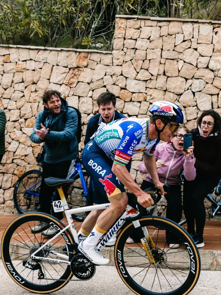 Les deux équipes Specialized du peloton, Red Bull-Bora-Hansgrohe et Soudal Quick-Step, roulent sur des Roval Rapide CLX III (ou Alpinist ou Sprint), la nouvelle génération sortie en 2025. Sans grande surprise, c’est ce modèle que les coureurs ont logiquement adopté dès leur disponibilité, profitant d’une jante affinée et d’une rigidité améliorée par rapport à la génération précédente. L’intégration verticale Specialized/Roval reste l’une des plus abouties du WorldTour.4