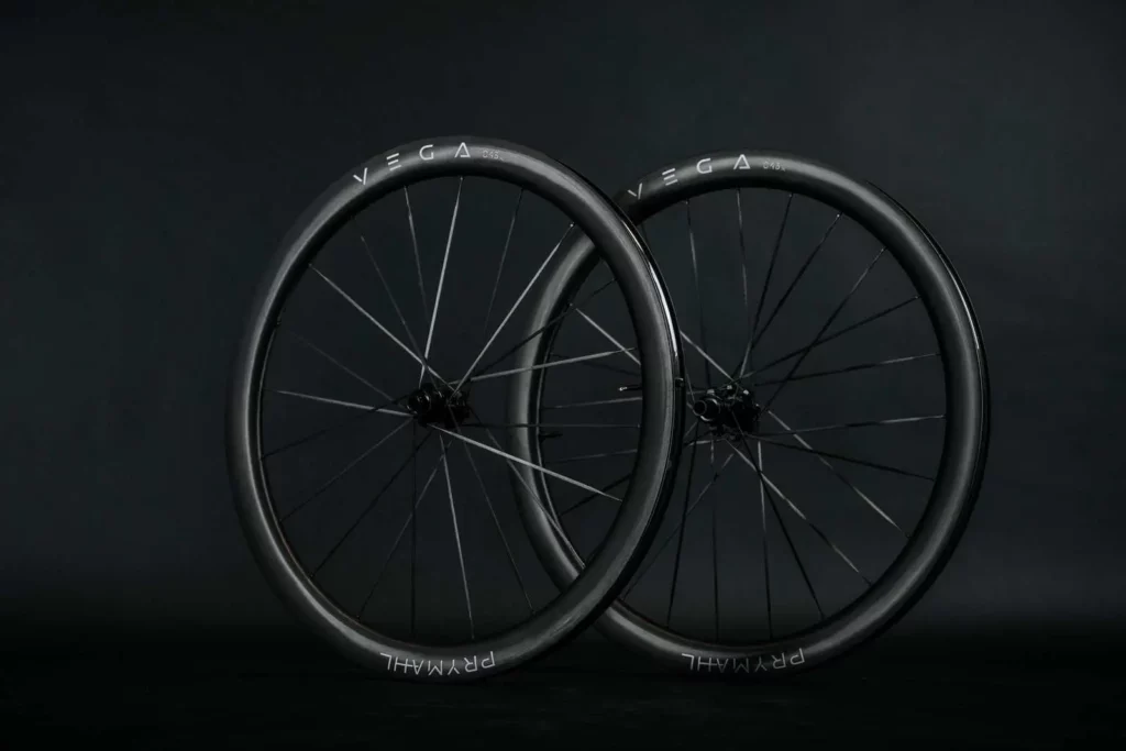 Toutes les jantes ont été entièrement redessinées. Prymahl annonce un gain de 14% en rigidité latérale par rapport à l’ancienne génération, grâce à un layup de carbone optimisé et un processus de moulage plus performant. La largeur interne a été augmentée pour s’adapter aux sections de pneus modernes : on retrouve par exemple 23 mm sur les Orion C48 (route) et 25 mm sur les Vega C45 (gravel). Ce gain offre un meilleur soutien au pneu, améliorant le confort, le grip et le rendement. Le profil en « U », désormais un standard, est adopté pour une meilleure stabilité face au vent latéral.